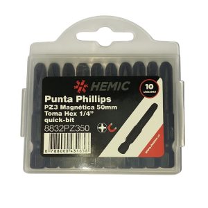 Puntas Phillips PH2 Quick Change Imantada Premium x 50mm 10 Piezas HEMIC