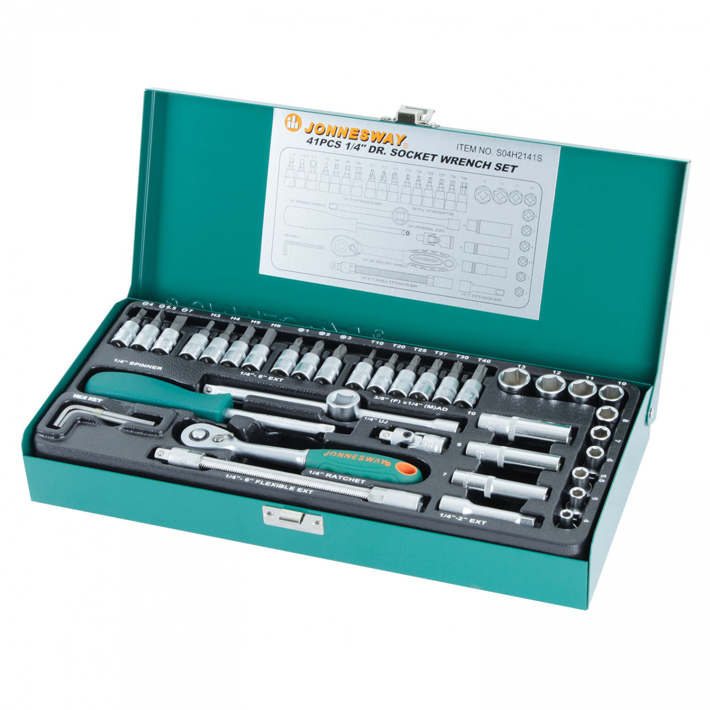 Juego de dados cuadrante 1/4″. 41 pzas. En maleta metálica.