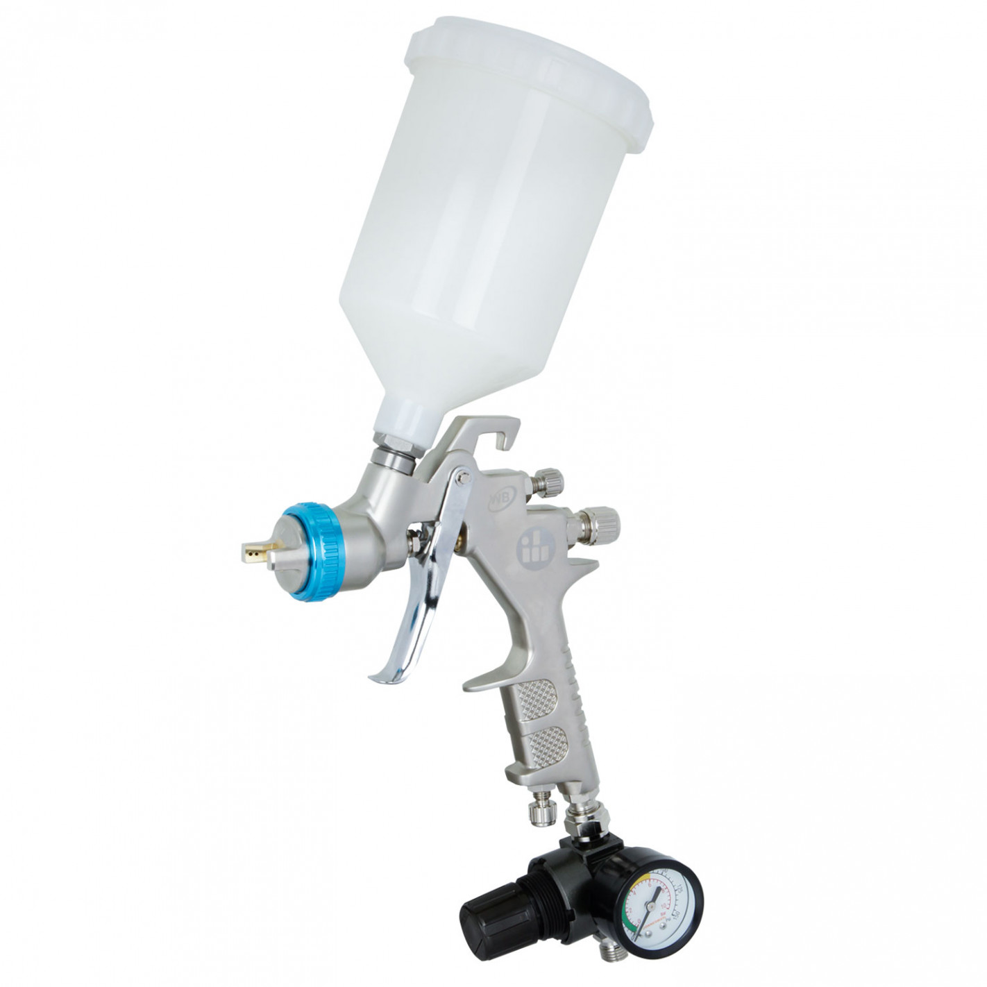 Pistola de pintura en base de agua, boquilla 1.3mm. Incluye: Regulador con Manómetro Copón 0.6 Lt. Entrada de aire. Presión de aire 2 bar.