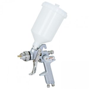 Pistola de pintura en base de agua, boquilla 1.3mm. Incluye: Regulador con Manómetro Copón 0.6 Lt. Entrada de aire. Presión de aire 2 bar.